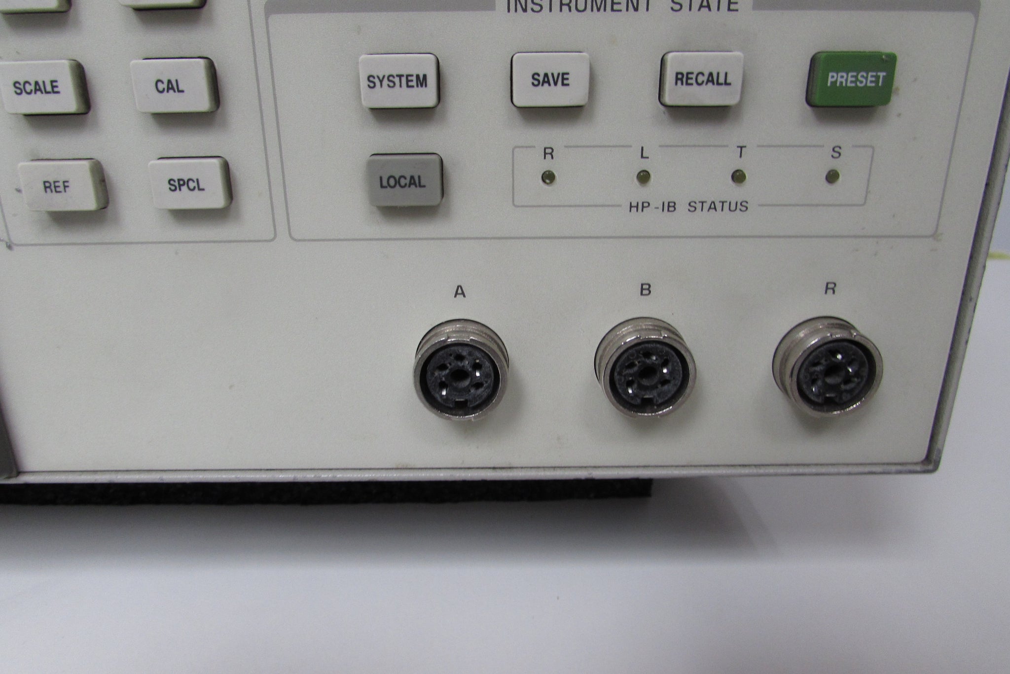 The Agilent 8757D has four independent display channels that process the signals from the Agilent 85037 series precision detectors, 85025 and 85026 detectors, and the 85027 series directional bridges for logarithmic display, in single channel or ratio mode. Three (optionally four) detector inputs are provided.