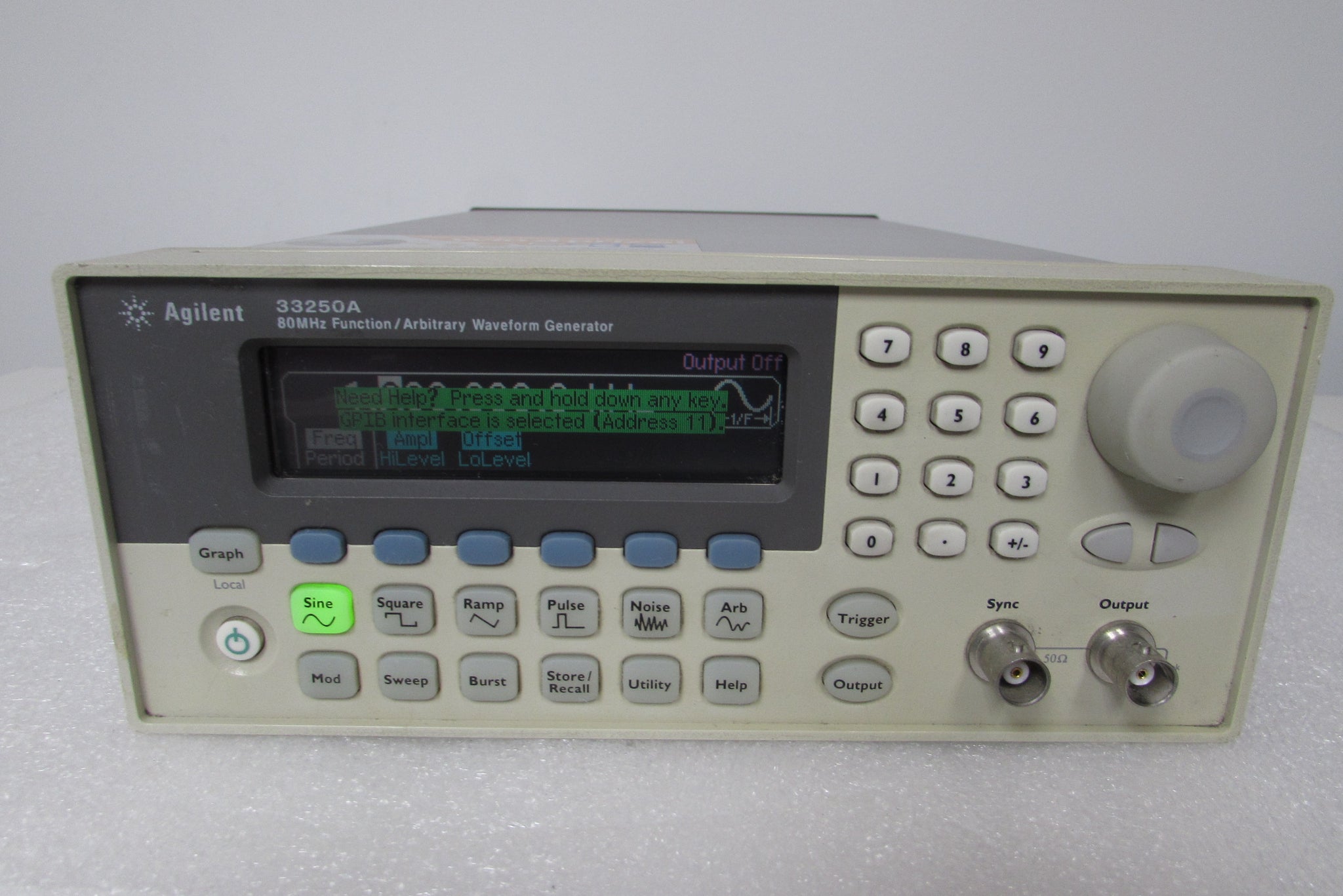 The 33250A is an 80 MHz Function/Arbitrary from Agilent. An arbitrary waveform generator (AWG) is a type of electronic test equipment people use to generate repetitive or single-shot electrical waveforms. Single-shot waveforms require a triggering source, either internal or external, while repetitive waveforms do not. Inject the signal the waveform generator creates into a device for analysis during testing, finding problems with the device, or confirming proper operation.