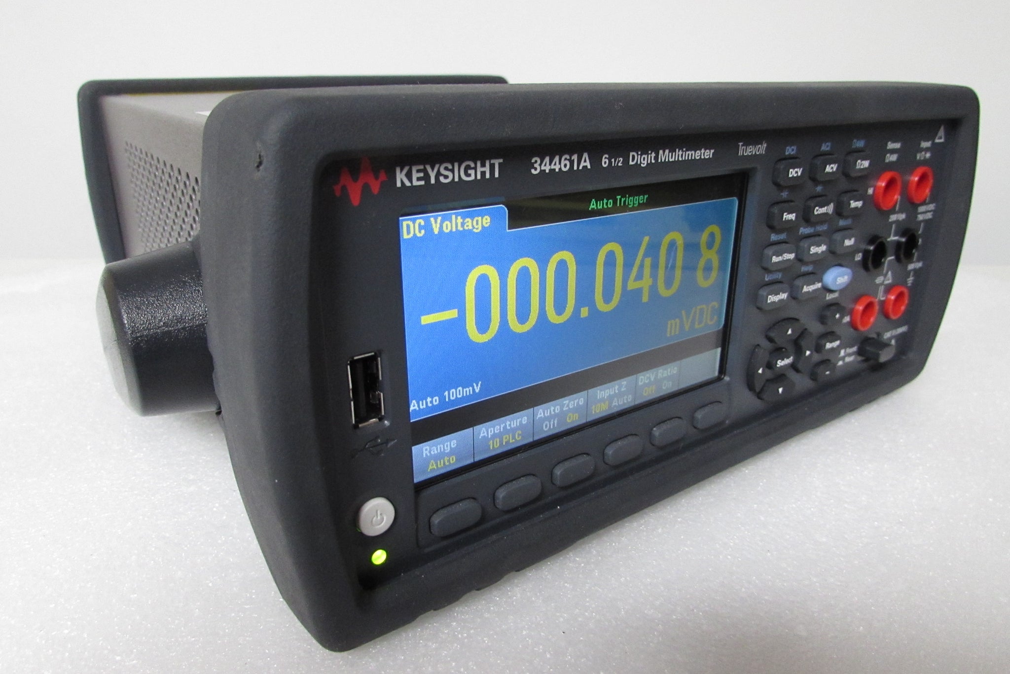 The Agilent 34461A is a 6.5 digit bench multimeter from Keysight Agilent. A multimeter is an instrument used to test and measure alternating current (AC) or direct current (DC) voltage, resistance, and electric current. Multimeters combine voltmeters, ammeters, and ohmmeters. Electricians use multimeters to run diagnostics on batteries, switches, components, power sources, and motors.