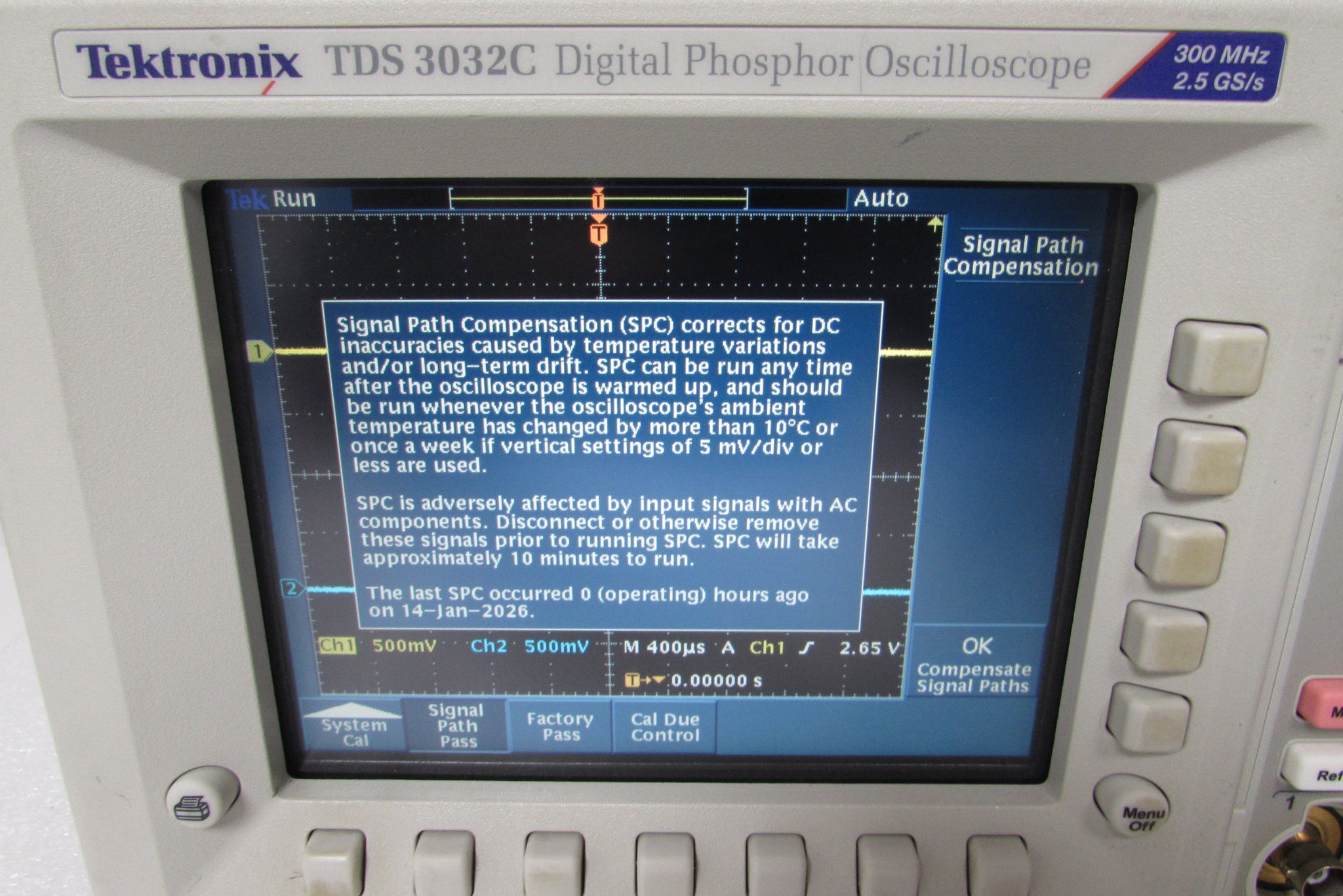The Tektronix TDS3032C 300 MHz, 2-Channel, 2.5 GS/s Digital Phosphor Oscilloscope packs the power of a DPO in a compact design that is only 5.9 in. (149 mm) deep, freeing up valuable benchtop space. And when you need to move your oscilloscope to another lab, its portable 7 lb. (3.2 kg) design makes for easy transport.